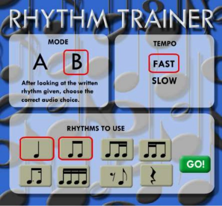 Figura 3: Tela do Exercício do Modo B do The Rhythm Trainer